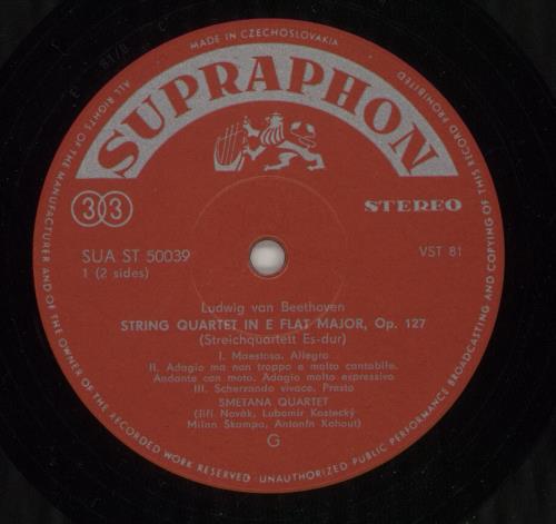 SMETANA QUARTET Beethoven: String Quartet In E Flat Major / Grosse Fuge In B Flat Major (1963 Czech 2-part stereo vinyl LP, front laminated flipback picture sleeve with extensive sleevenotes. The sleeve shows minimal wear and the vinyl appearsbarely played SUAST50039)