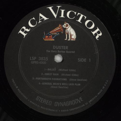GARY BURTON QUARTET Duster (1967 US 8-track vinyl LP, thick card picture sleeve. Landmark release from Burton's quartet [Larry Coryell, Steve Swallow, Roy Haynes], largely ignored when released it is now often cited as the first example of jazz fusion. The sleeve shows minimal wear for its age and the vinyl is Near Mint LSP-3835)