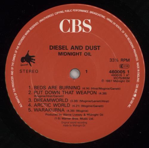 MIDNIGHT OIL Diesel & Dust (1988 UK red label issue of the 1987 10-track LP, housed in a single pocket picture sleeve with the hype sticker attached. The sleeve & vinyl appear Near Mint, still in the shop price stickered open shrinkwrap)