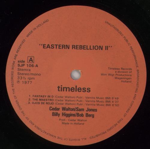 BOB BERG, CEDAR WALTON, SAM JONES & BILLY HIGGINS Eastern Rebellion 2 (Free Jazz 1977 Dutch 4-track LP, recorded that year at the CI Recording Studio, NYC. The glossy picture sleeve is Excellent with little shelf wear & the vinyl appears barely played SJP106)