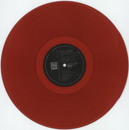 THE BEATLES Please Please Me (Rare 1982 Japanese Original Mono Record 14-track LP pressed on Red Coloured Vinyl, picture sleeve with Japanese/lyric insert. These were originally limited to10,000 copies but quickly disappeared into collections 30 years ago and now rarely surface. The sleeve has a small area of sticker residue and some discolouring to the back with all text remaining clear, including the spine while the vinyl looks barely playedEAS-70130)