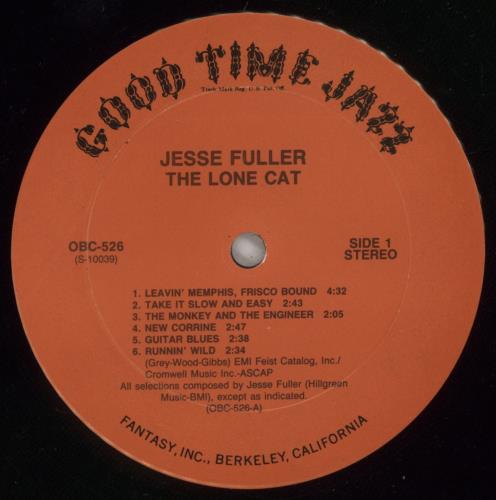 JESSE FULLER The Lone Cat (1990 US issue of the 1961 12-track remastered LP, recorded at the Good Time Jazz studio in Los Angeles on 12th September 1958. Housed in a picture sleeve - still in its opened shrinkwrap with 'Original Blues Classics' hype sticker plus store price and import stickers OBC-526)