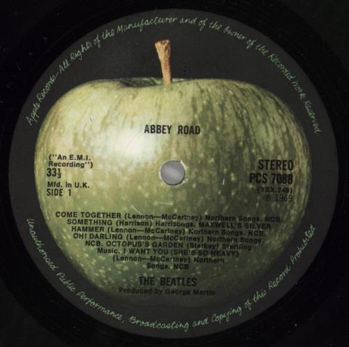 THE BEATLES Abbey Road (Rare 1970 UK 2nd press 16-track stereo LP with misaligned Apple on the back of the sleeve and without 'Her Majesty' credit on the label or sleeve. This seldome seen copy has YEX 749 A-3U and YEX 750-1 matices while the labels do not have 'sold in the UK' text. The sleeve shows very little wear with just light ringwear while the vinyl has only minimal signs of play. A fantastic copy of this hard to find variant in wonderful condition PCS7088)#Top 500 Greatest Albums Of All Time