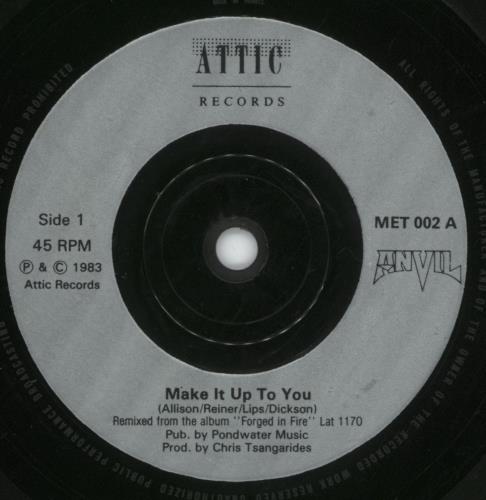 ANVIL Make It Up To You (1983 UK 7" vinyl single, also including 'Metal On Metal'. The blue & silver glossy picture sleeve has a little shelfwear and the vinyl has some surface scuffs but remains in EX condition MET002)
