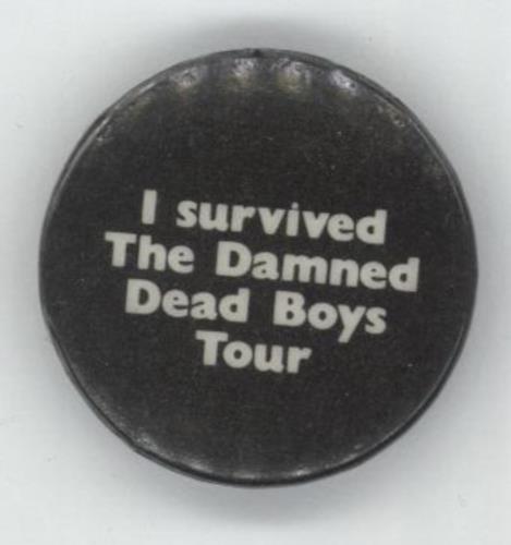 THE DAMNED I Survived The Damned Dead Boys Tour Button Badge (Super rare and original 1977 UK promotional button badge. U.S. band Dead Boys supported the Damned throughout their November and December 1977 UK tour. This promo only badge was created to celebrate the tour and in keeping with Stiff's maverick approach to design and promotion bears the legend, "I Survived The Damned Dead Boys Tour", measuring 15.9mm in diameter and obtained from a former Stiff Records employee, the item shows no wear andhas remained unused for the past forty-eight years - a small [yet, very desirable] artefact from the British punk scene. Essential)