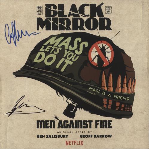 BEN SALISBURY & GEOFF BARROW Black Mirror: Men Against Fire (2017 UK 14-track Picture Disc. Original score to the fifth and penultimate episode of the third series of Charlie Brooker's distopian science fiction anthologyseries. Picture sleeve with 12x12 art print. The sleeve is Autographed on the front in blue and black marker pen by both Geoff Barrow & Ben Salisbury. A Near Mint copy)