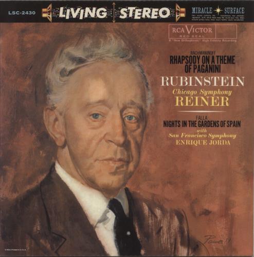 ARTUR RUBINSTEIN Rhapsody On A Theme Of Paganini/ Nights In The Gardens Of Spain (00s US Classic Records Exclusive 'Living Stereo' vinyl LP pressed on 180-gram. Comes housed in a picture sleeve replicating the original album's artwork from 1960. Recorded with the Chicago Symphony & San Francisco Symphony Orchestras, respectively [Fritz Reiner & Enrique Jorda conducting], The sleeve shows minimal sign of wear and the vinyl remains Near Mint LSC-2430)