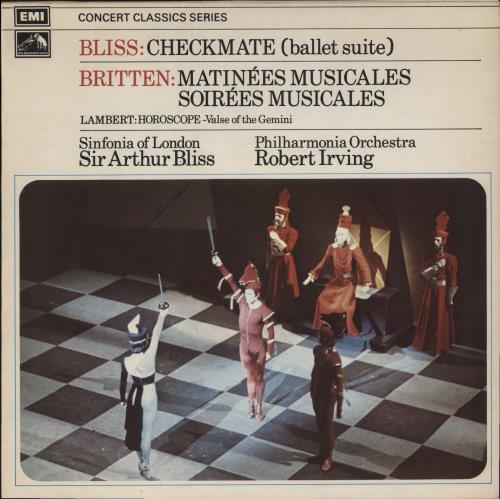 SIR ARTHUR BLISS conducts the SINFONIA of LONDON Bliss: Checkmate / Britten: Matinées Musicales / Soirées Musicales / Lambert: Horoscope (1973 UK 4-track stereo vinyl LP, front laminated picture sleeve. The sleeve shows light wear and the vinyl appears barely played SXLP30153)