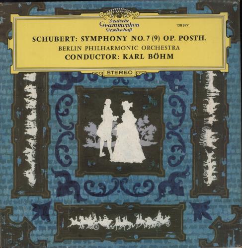 THE BERLINER PHILHARMONIKER conducted by KARL BÖHM Symphonie Nr.7 (9) Op. Posth. (1970s UK issue of the 1963 stereo LP, fully laminated picture sleeve with sleeve notes in German, English & French. The sleeve shows minimal wear and the vinyl appears barely played)