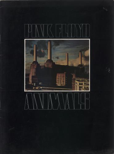 PINK FLOYD Animals (1978 UK 28-page 13" x 10" colour tour programme featuring live photographs of the band and surreal images of Battersea power station which is also featured on the front and back covers. This copy has some light crease marks, obvious disolouration to the back, but otherwise remains in decent condition with just a little wear. Also included is a stub from the gig at the New Bingley Hall, Stafford on 28th March 1977 and some interesting music paper review cuttingscarefully attached to the inner pages. A very acceptable VG copy at an advantageous price! )