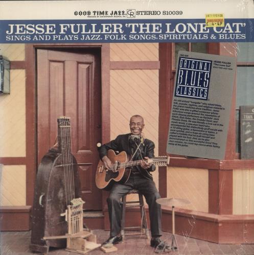 JESSE FULLER The Lone Cat (1990 US issue of the 1961 12-track remastered LP, recorded at the Good Time Jazz studio in Los Angeles on 12th September 1958. Housed in a picture sleeve - still in its opened shrinkwrap with 'Original Blues Classics' hype sticker plus store price and import stickers OBC-526)