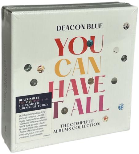 DEACON BLUE You Can Have It All (UK 2023 160-track 14CD set, including reissues of Raintown / Riches, When The World Knows Your Name, Ooh Las Vegas, Fellow Hoodlums, Whatever You Say, Say Nothing, Homesick, The Hipsters, A New House, Believers, City Of Love and Riding On The Tide Of Love, plus 'Peace Will Come', a brand-new 12-track acoustic album that contains re-interpretations of some of the bands best loved songs plus previously unreleased cover versions, packaged in a clamshell box containing the 13 different albums in card wallet sleeves and complete with a fully-illustrated 24-page booklet containing rare and previously unseen imagery plus an extensive sleeve notes by journalist Nicola Meighan. The discs are in BRAND NEW condition housed in the box which remains sealed within its custom-stickered original shrinkwrap COOKBOX868)