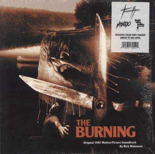 ORIGINAL SOUNDTRACK The Burning (Limited Edition 2017 US Webstore Exclusive 11-track LP pressed on Heavyweight Black & Orange Swirl Vinyl, featuring Rick Wakeman's score from the soundtrack to the 1981 cultslasher, an early project for an infamous Miramax producer, starring a young Holly Hunter & Jason Alexander [Seinfeld] with involvement from Tom Savini. The picture sleeve & vinyl are Near Mint, still in the hype stickered open shrinkwrap OWS12)***Limited to only 200 copies***