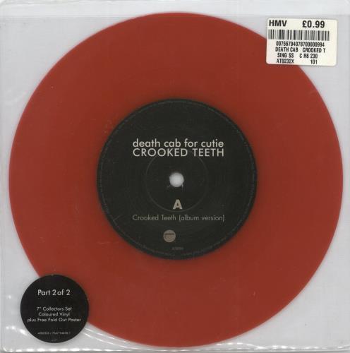 DEATH CAB FOR CUTIE Crooked Teeth (2006 UK limited edition 7" single pressed on Red Vinyl, also includes the exclusive recording 'Talking Like Turnstiles', housed in PVC sleeve with hype sticker still attached)