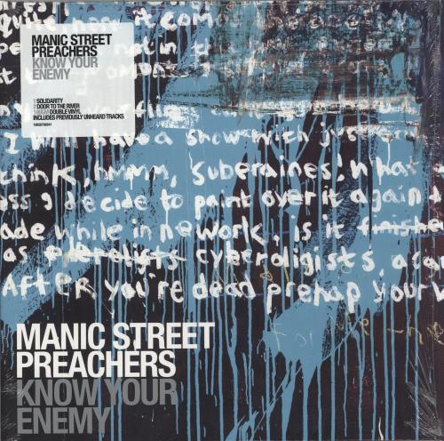MANIC STREET PREACHERS Know Your Enemy (2022 UK/EU limited edition 22-track double 180gram Vinyl LP - A remastered version of their 2001 sixth studio album which has been expanded [as suggested by Nicky Wire] into the two-part album that the band originally envisioned, including the singles So Why So Sad [included here with the Avalanches Sean Penn Mix], Found That Soul, Ocean Spray and Let Robeson Sing plus a collection of previously unheard songs. Displaying brand new artwork with picture inners, the gatefold picture sleeve remains in its open shrink wrap with hype sticker and is free of shelfwear. The vinyl shows only light cosmetic signs of play. This copy includes and an Autographed print, signed by James, Nicky and Sean; which was available with pre-orders from the band's online store)